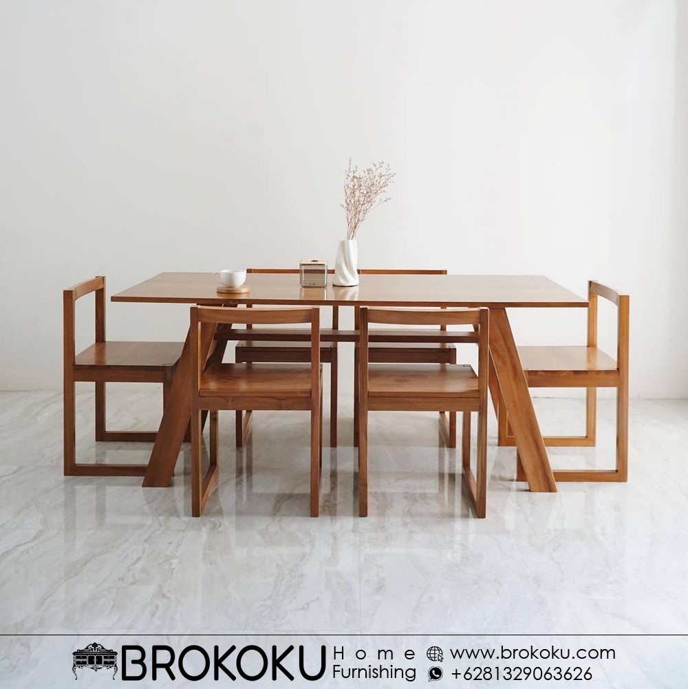 Meja makan jati Jepara tidak hanya menawarkan keindahan, tetapi juga keunggulan dari segi material. Kayu jati terkenal dengan daya tahannya terhadap perubahan cuaca, serangan rayap, dan keretakan. Investasi pada meja makan ini adalah langkah cerdas untuk mempercantik rumah Anda sekaligus menikmati fungsinya selama bertahun-tahun. Temukan berbagai pilihan meja makan jati Jepara dengan desain minimalis modern maupun klasik mewah hanya di Brokoku Home Furnishing.