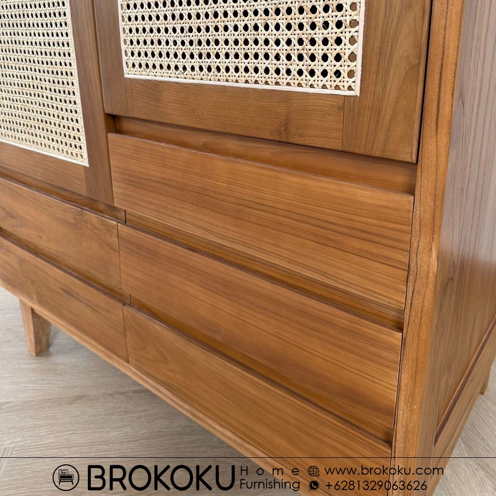 Cara order Lemari kayu jati 5 laci 2 pintu rotan minimalis BHF-267