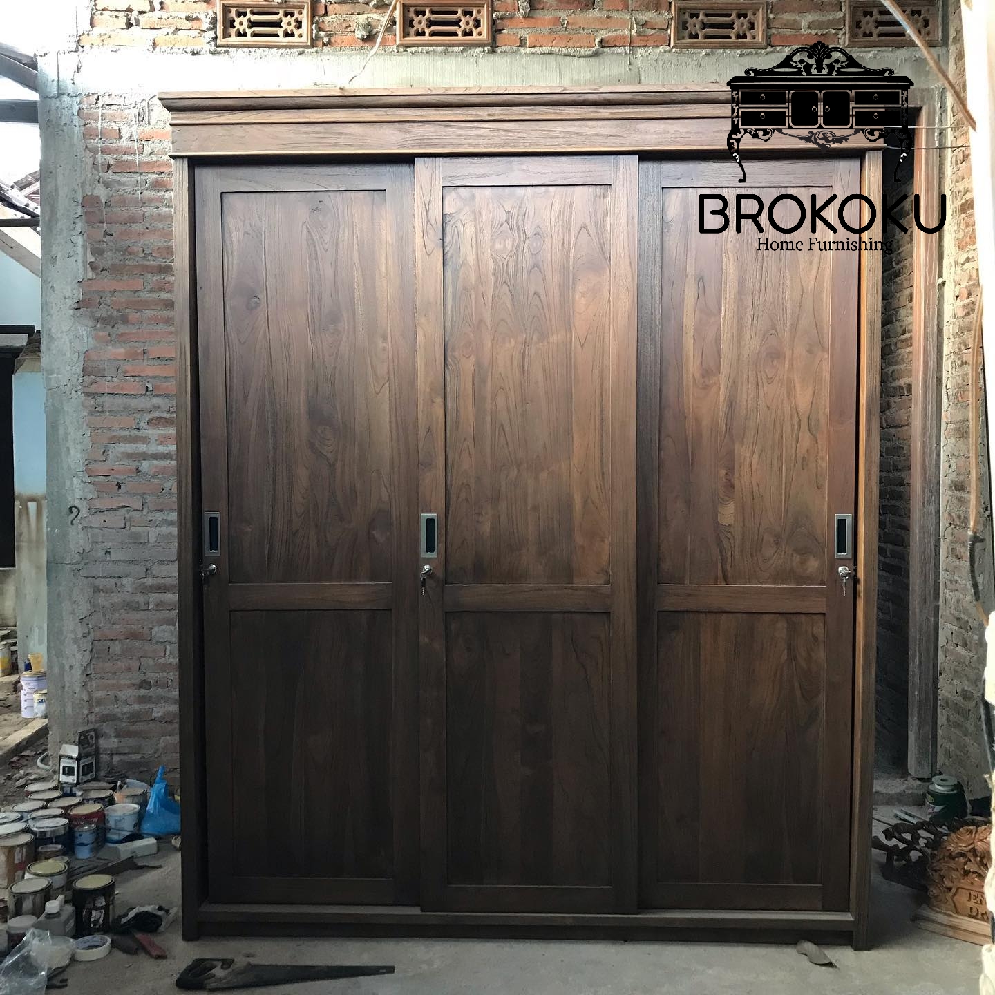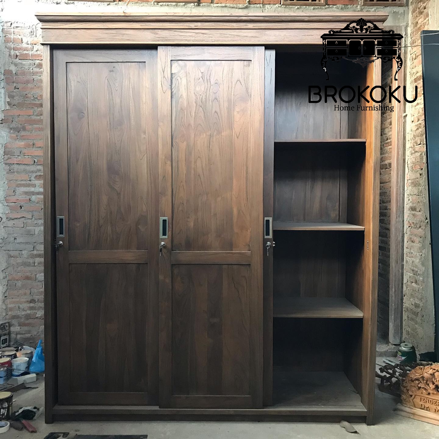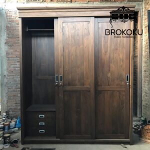 Lemari Pakaian Jati jepara klasik 3 pintu sliding BHF-07, Lemari baju pintu geser, lemari pakaian sliding 3 pintu, lemari sliding 3 pintu minimalis kayu jati, lemari sliding antik dengan spesifikasi sebagai berikut By Brokoku Home Furnishing