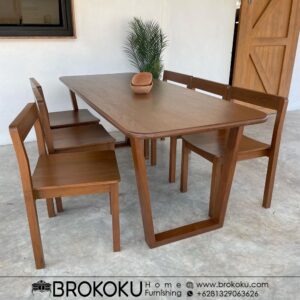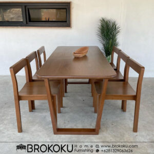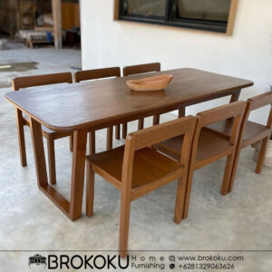 Meja makan jati minimalis 6 kursi danish style minimalis modern BHF-142, Set meja makan kayu jati jepara, meja makan minimalis modern, meja makan jati 6 kursi minimalis by Brokoku Home Furnishig dengan spesifikasi sebagai berikut: