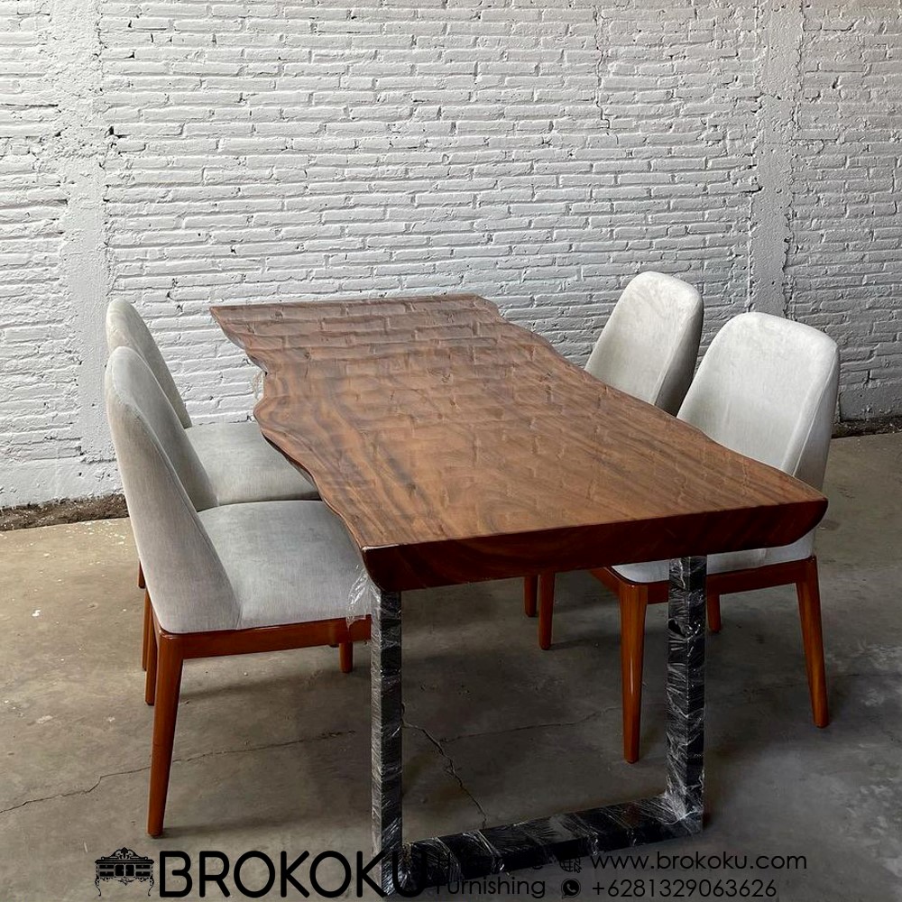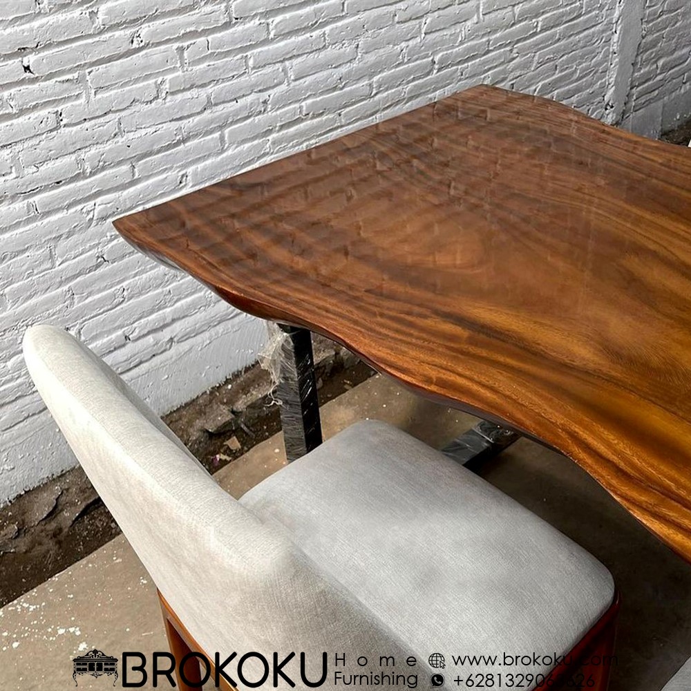 Set Kursi makan meja solid trembesi minimalis modern BHF-40, meja makan jepara, Set 6 kursi 1 meja makan solid trembesi utuh kaki besi desain terbaru by brokoku home furnishing dengan spesifikasi sebagai berikut