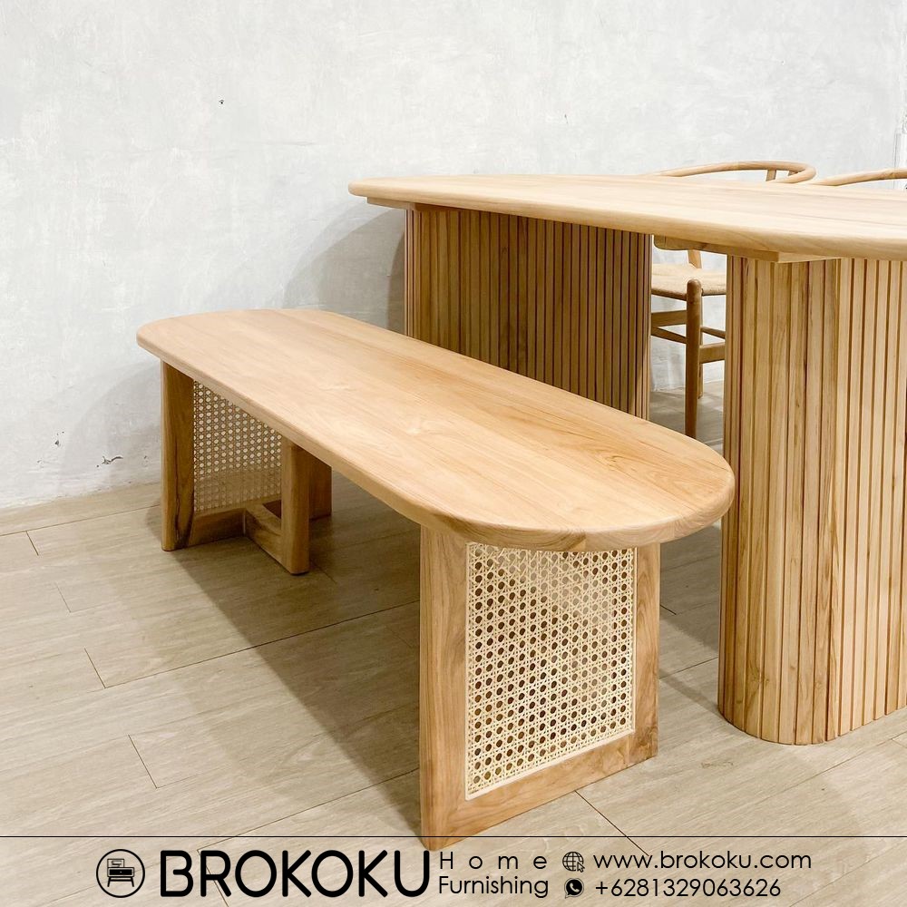 Cara Pemesanan Set meja makan kayu jati 1 bangku 3 kursi wishbone BHF-221