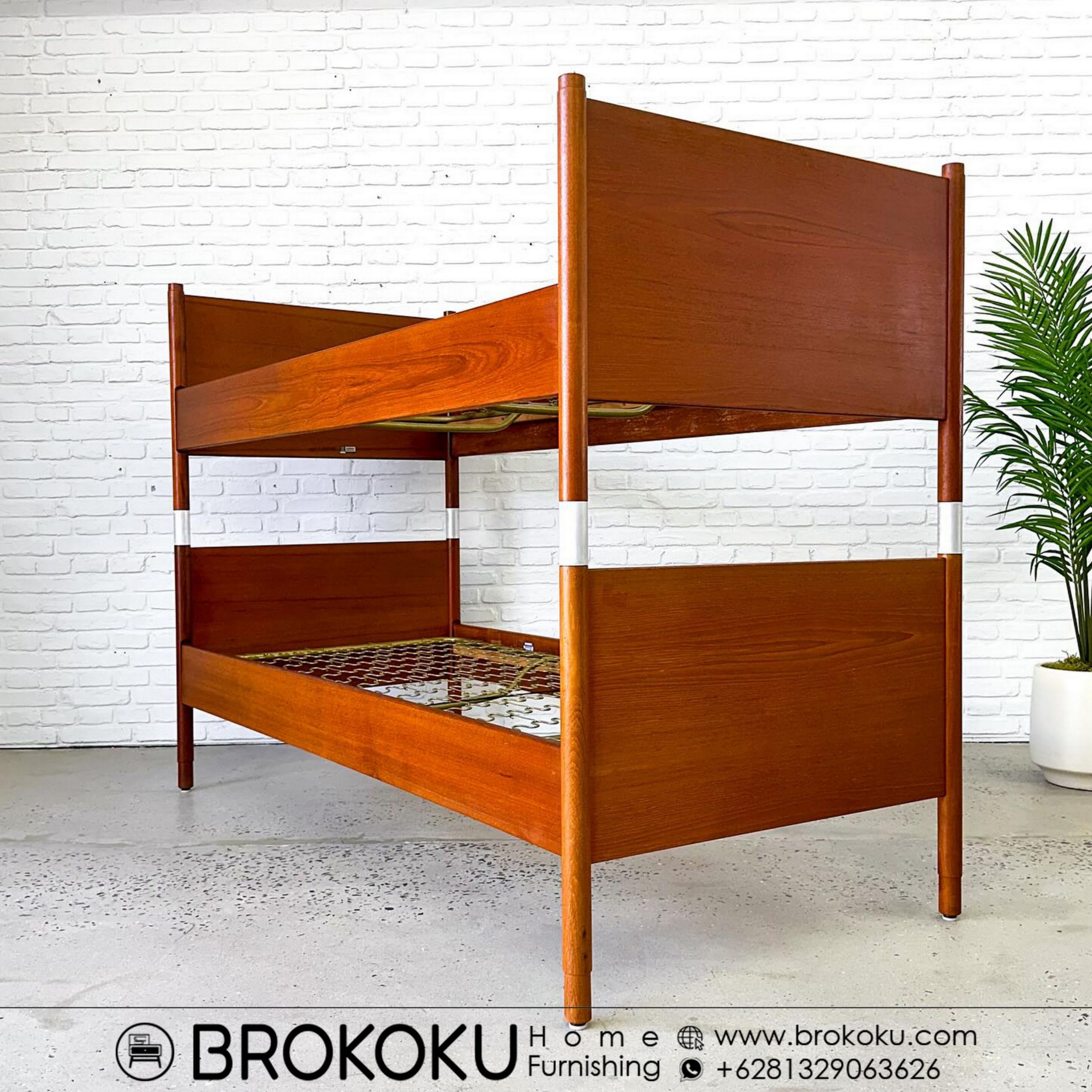 Tempat tidur tingkat jati retro modern minimalis BHF-281, tempat tidur tingkat kayu jati jepara, ranjang tingkat minimalis kayu jati solid, dipan susun retro modern kayu jati solid kontruksi knockdown finishing melamine rapi kuat dan awet produksi brokoku home furnishing:
